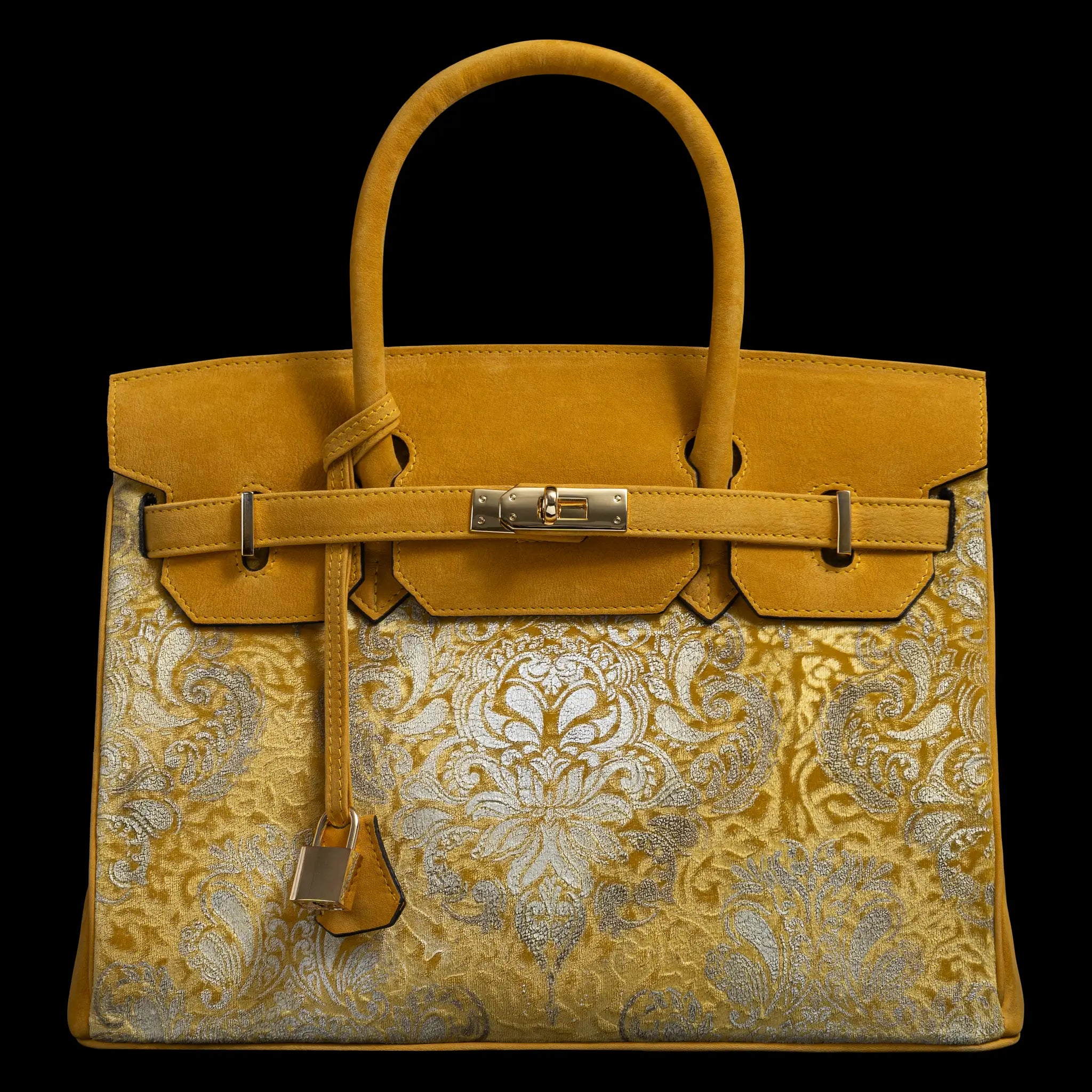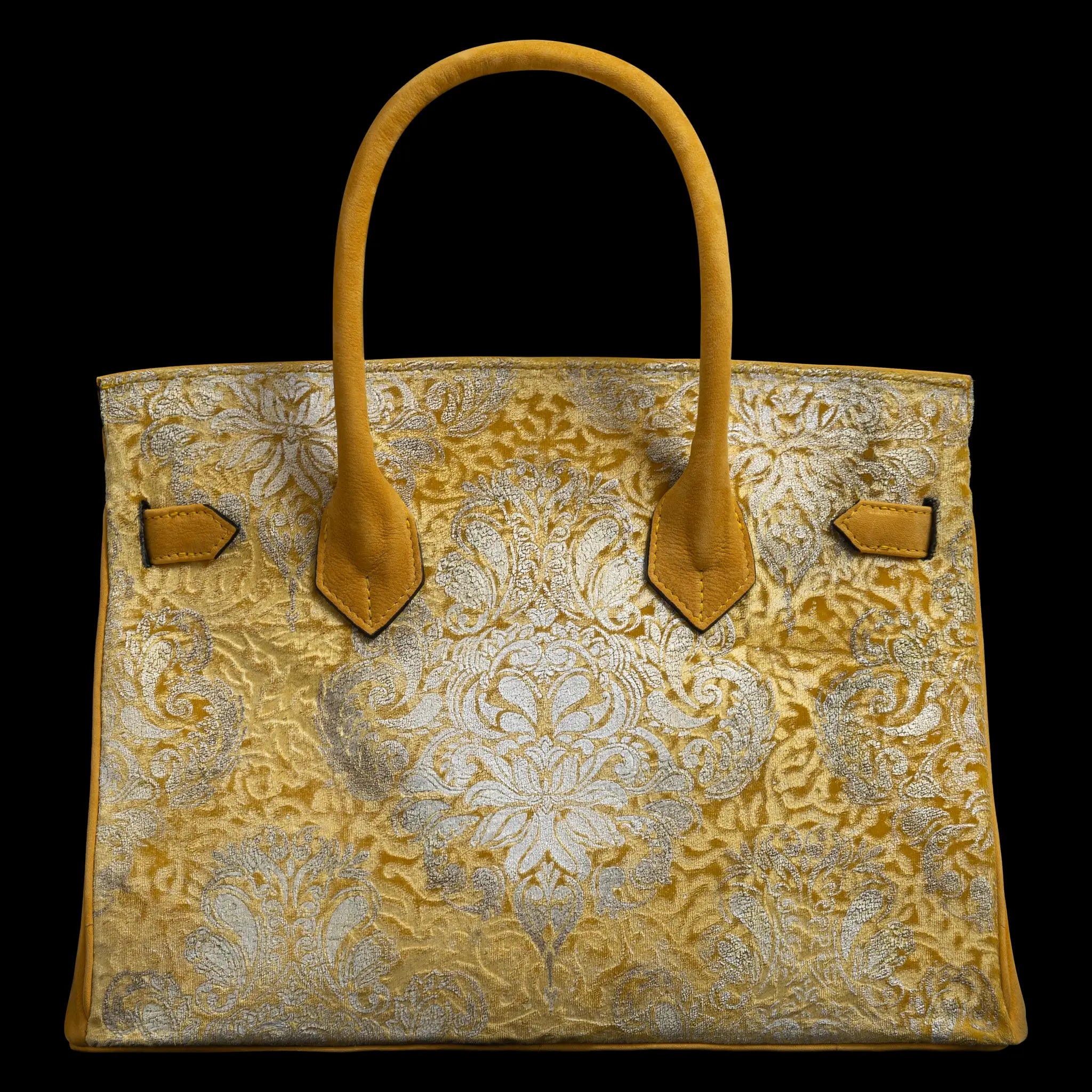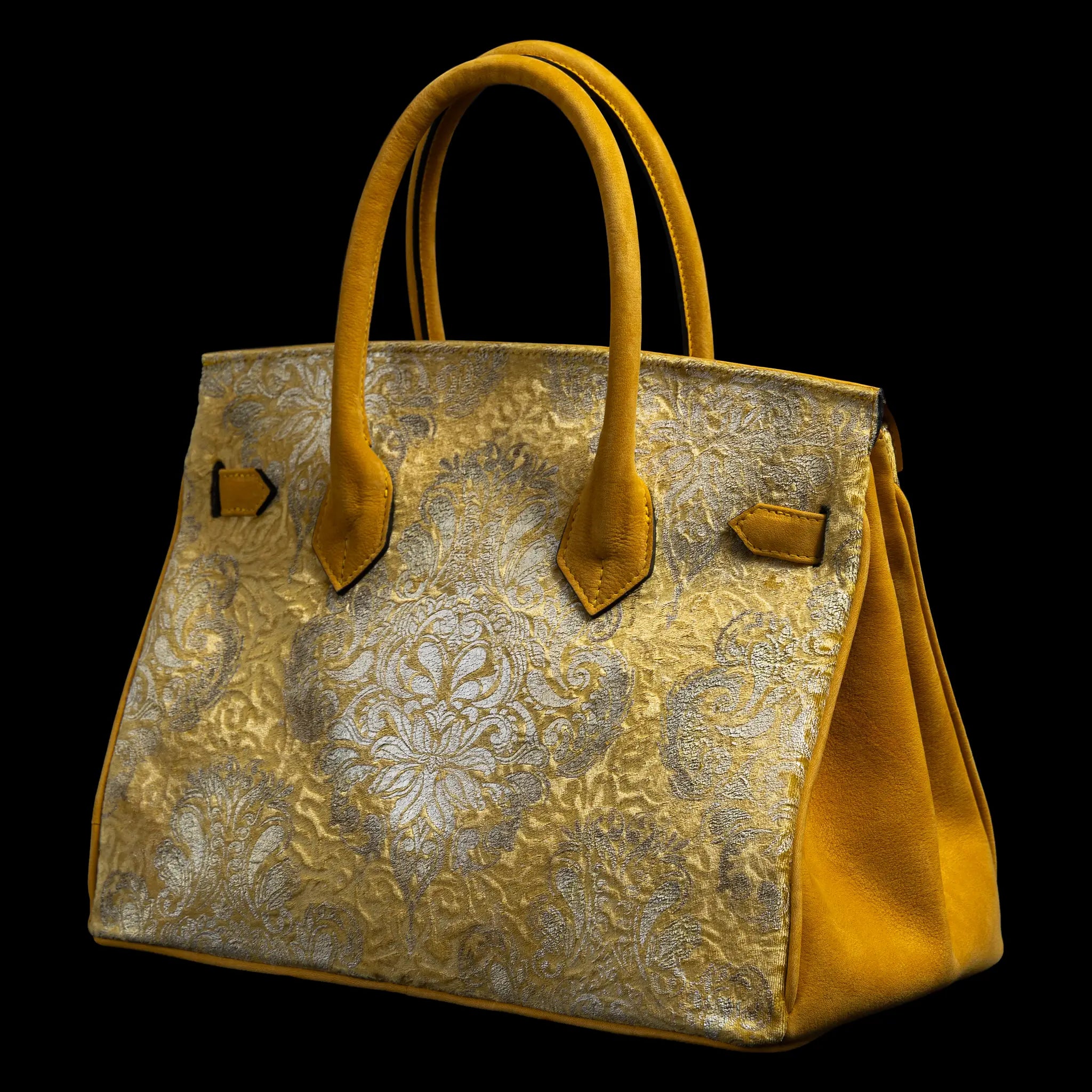Borsa a mano o a spalla in velluto di seta stampato a mano